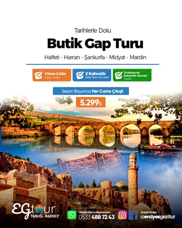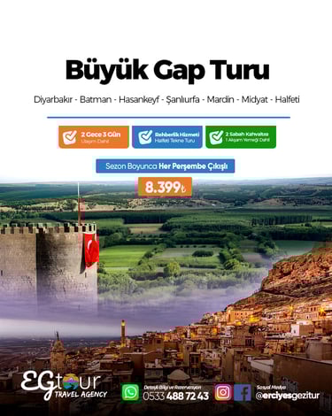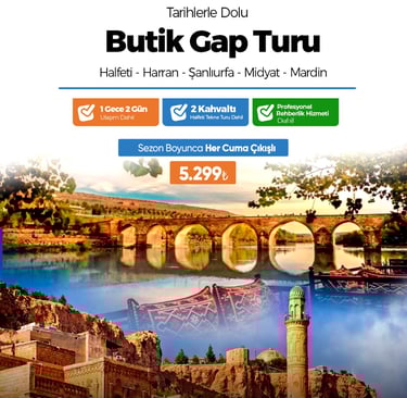 GAP, tarih, kültür ve medeniyetin iç içe geçtiği eşsiz bir coğrafya. Bu tura katılan herkes, Mezopotamya’nın zengin mutfağından antik uygarlıkların izlerine kadar bambaşka bir dünyanın içine girer. Her gün “iyi ki gelmişim” dedirten bir keşif!
